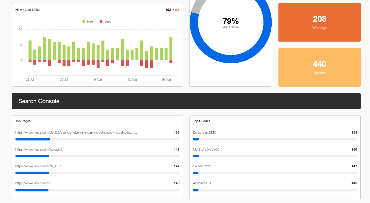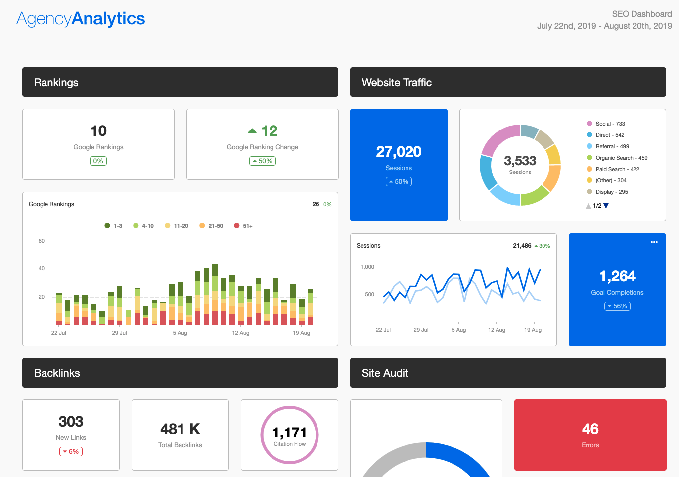 If you're managing SEO campaigns for clients, running an SEO site checker on a regular basis and creating a dedicated SEO dashboard or report allows you aggregate marketing performance data from multiple sources, automate your reporting, and ultimately scale your agency.