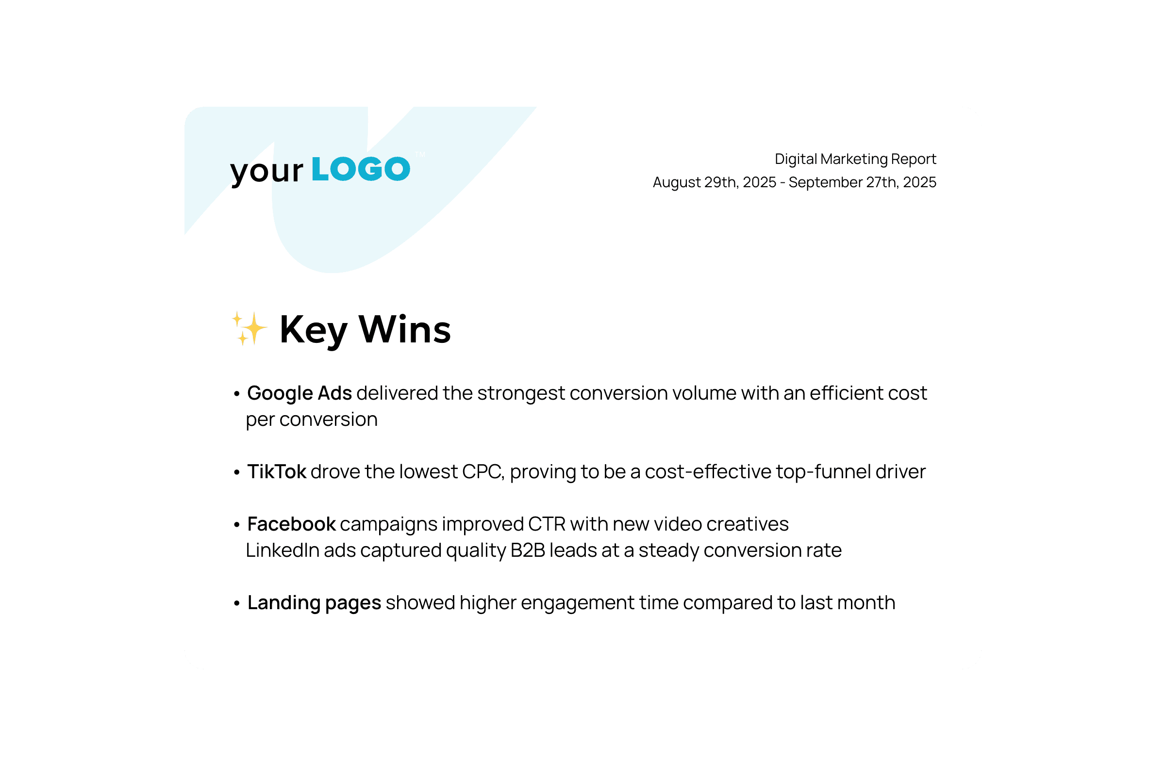 Good reporting goes beyond summarizing data. It highlights the real wins your client cares about. It should be easy for clients to spot what has improved, understand why it matters, and feel confident that their investment is paying off.